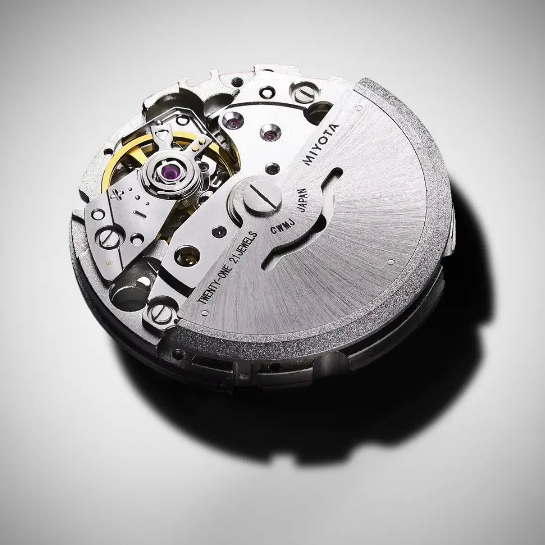 Sua coroa posicionada às 4 horas reduz o contato com o dorso da mão durante o uso diário. Esse posicionamento também cria um alinhamento natural com a janela de data, reforçando a harmonia do mostrador sunray escovado visto através do cristal de safira que reflete a luz em diferentes tons conforme o ângulo de visão.